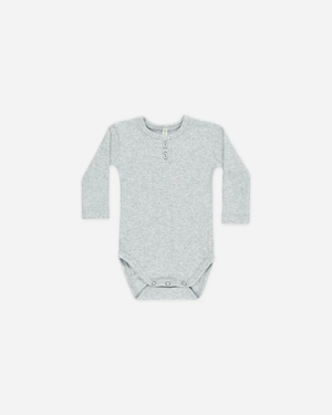 Our Henley Long Sleeve Bodysuit, made from our ribbed melange knit, features a two-button placket at the center front and bottom snaps for easy changes. Pair with our Ribbed Leggings to complete your little one's look.