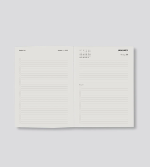 A5 Hardcover, day per page diary featuring: