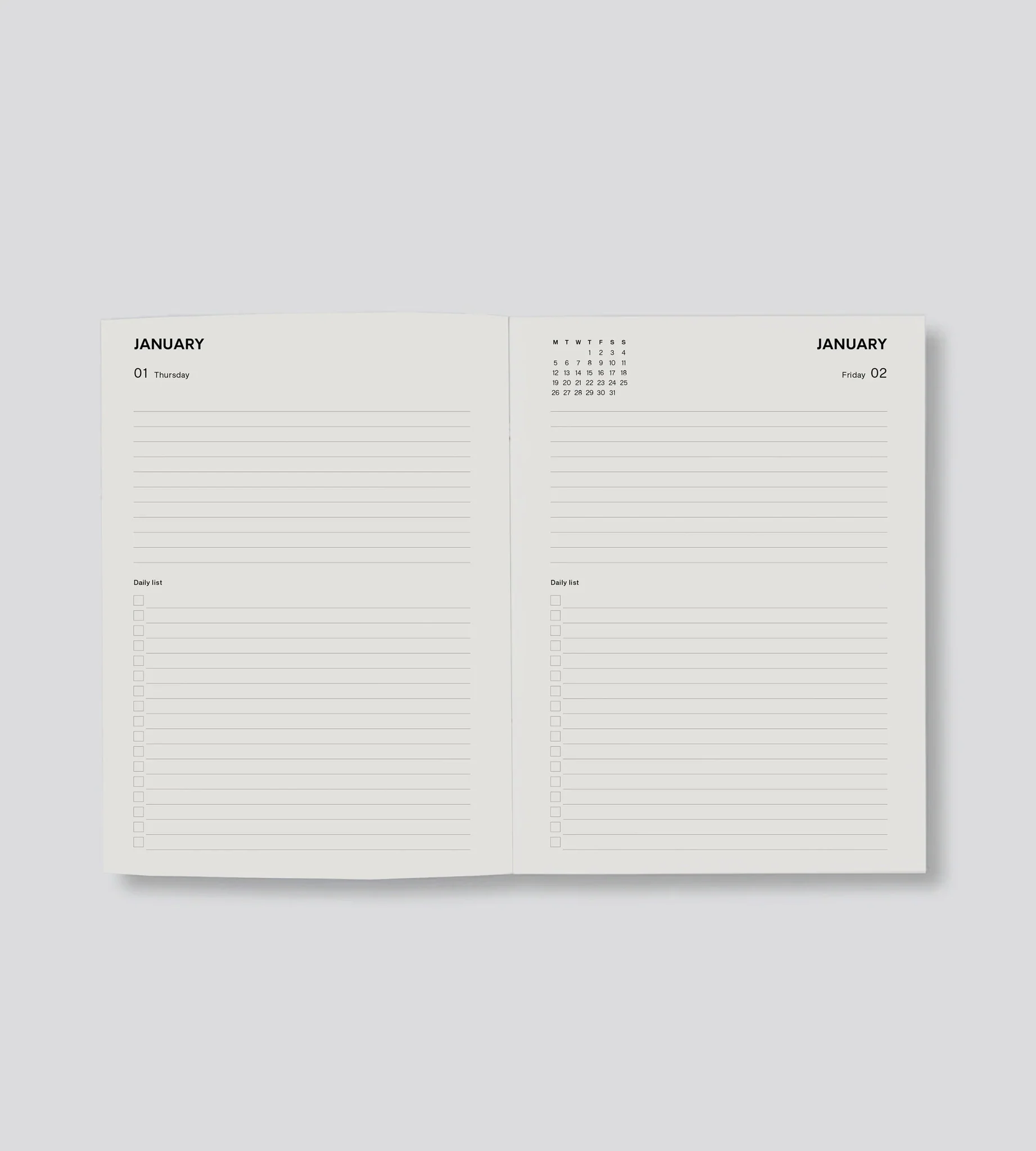 - Monthly double page planner