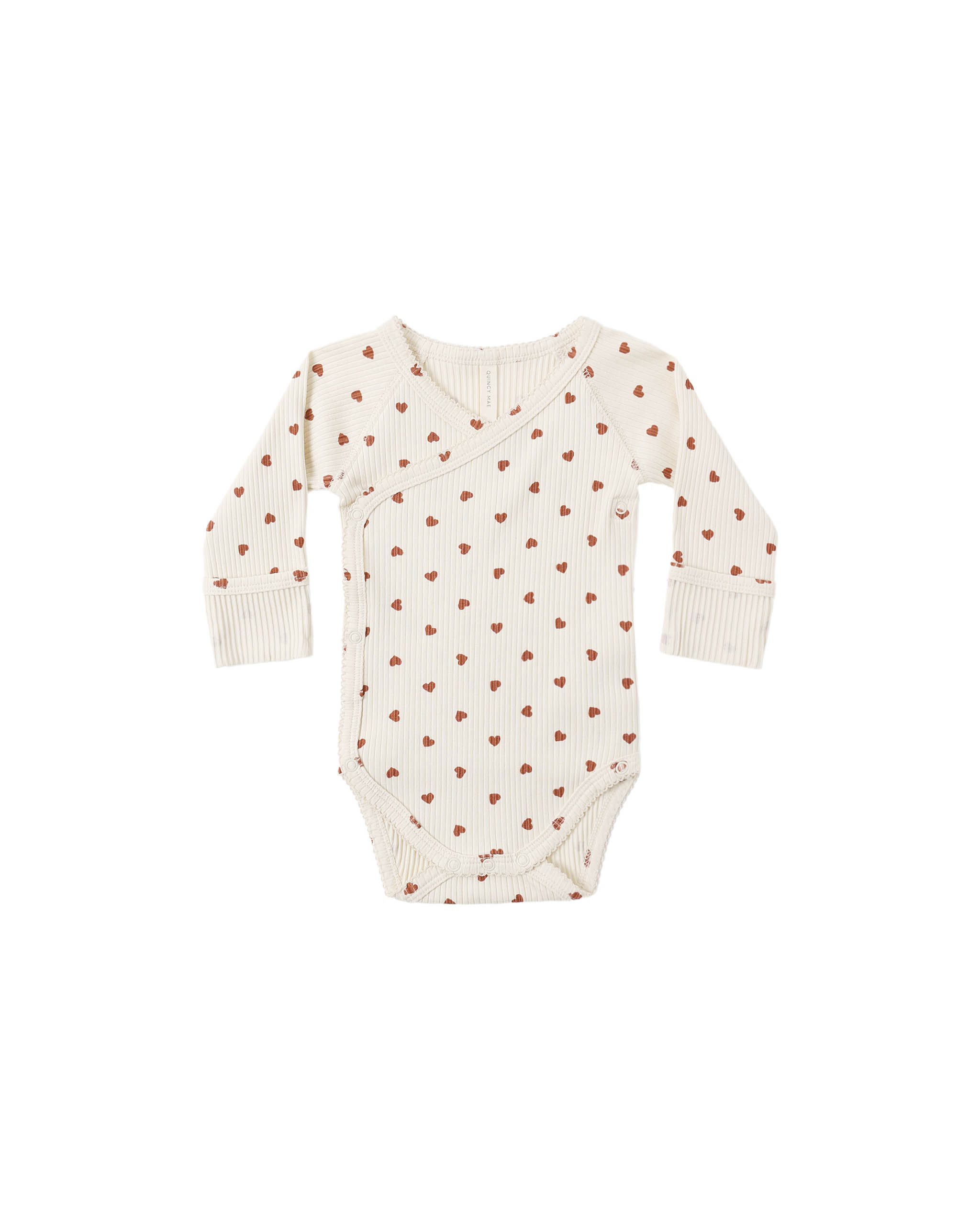 Side snap bodysuit made out of our velvety soft organic brushed fabric. Snaps at inside and along inseam for the coziest fit with fold-over hand mitts.