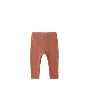 Knit legging in our stretchy rib knit with elastic waistband. Slim fit with added stretch to grow with your baby.
